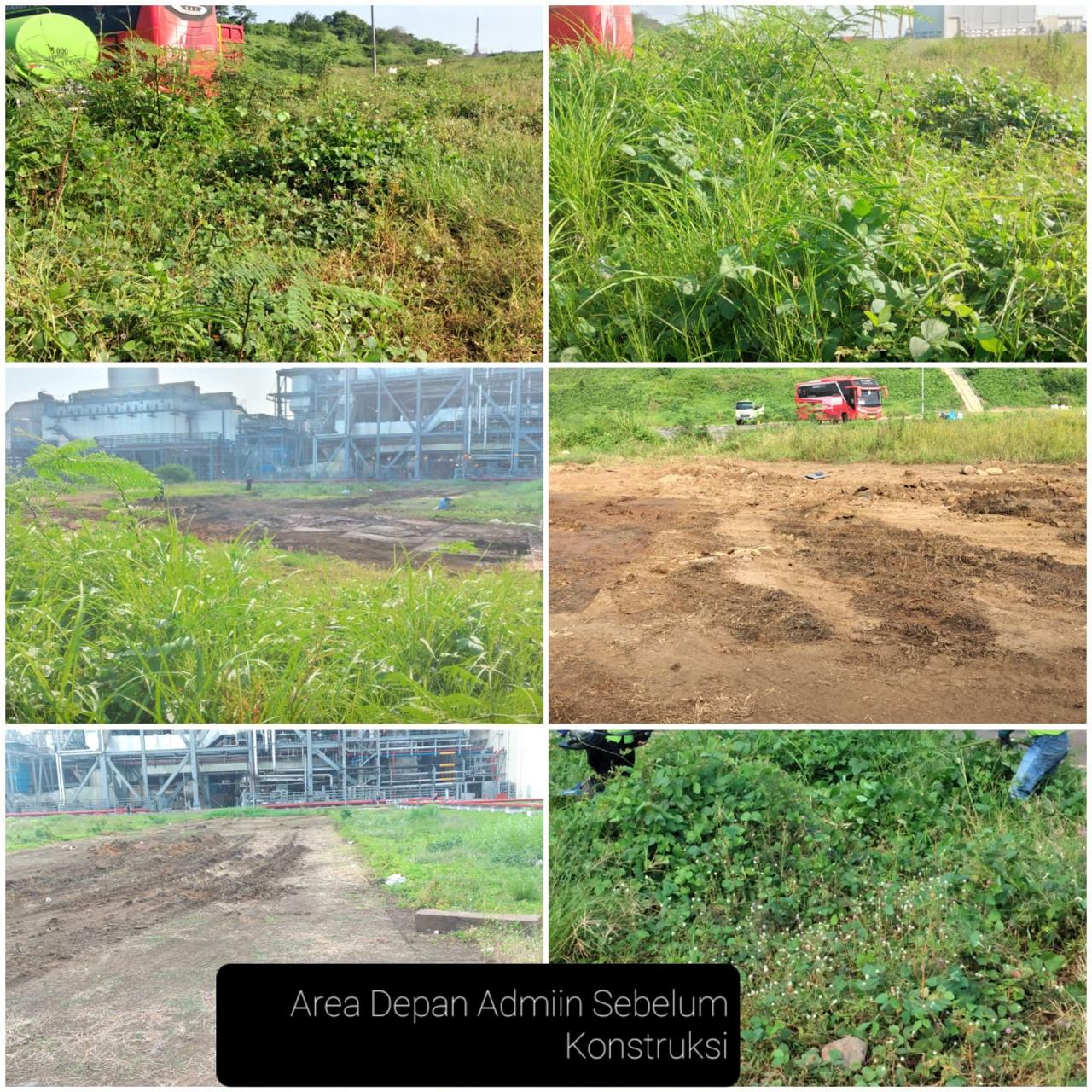 Sebelum konstruksi dimulai, area depan administrasi masih tampak sederhana dan belum memiliki elemen desain yang representatif. Terdapat beberapa jalur akses yang kurang terorganisir, sehingga membuat area ini tampak kurang rapi dan fungsional. Tanpa penataan lanskap yang memadai, area ini hanya memiliki ruang terbuka seadanya dengan permukaan tanah yang tidak rata, sehingga tidak mendukung kenyamanan dan keindahan lingkungan.